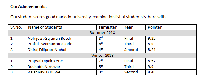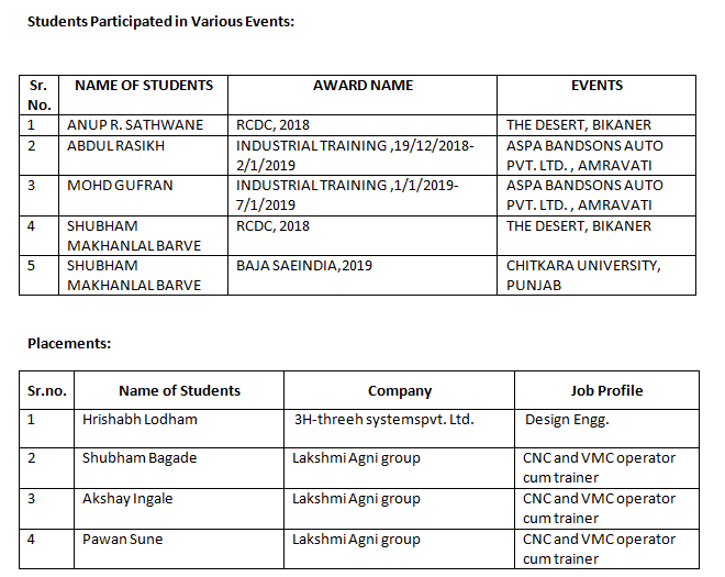 Rally Car Design Challenge (RCDC ) : Prof. Nachiket Kherde and teams of 27 students take initiative and manufactured the rally car known as VAYU. Team VAYU 1st rank in state level and stand 5th in National level. Our car also becomes poster car for next year RCDC.